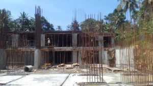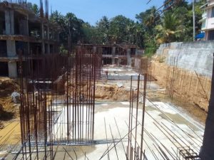 • Sub Structural Works – Pile concretingcompleted Pile chipping – 70 nos: completed, excavation for pilecap (10 Nos:) completed, pile cap RCC – 100m3 completed, Raft slab RCC – 129 m3 completed, Plinth beam RCC – 80m3 completed,Column 10 nos completed(part 2) sump tank base slab RCC completed, sump tank wall upto 2.3m RCC completed, Retaining wall rear side of house 60% completed, sheet piling completed