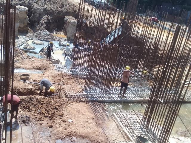• Sub Structural Works – Sub structural works – Pile concreting 459 nos: completed out of 495 nos:, Pile chipping – 70 nos: completed, excavation for pilecap (10 Nos:) completed, pile cap RCC – 85m3 completed, sump tank base slab RCC completed, sump tank wall upto 2.3m RCC completed, Retaining wall rear side of house 60% completed, sheet piling completed