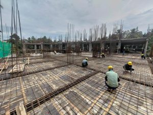 • CIVIL WORKS – Building Area – Column and Shear wall RCC- Basement- 100%, LG2 100%, LG1-100% ,GF 100% completed, FF- 100%, Second floor 100% completed. Slab RCC- Basement- 100%, LG2 100%, LG1-100% ,GF 100% completed, FF- 100%, Second floor 100% completed, Third Floor 50% completed. Staircase RCC -Basement – 1 Nos, LGF2- 1Nos, LGF1- 1 Nos, GF 2 Nos, FF 2 Nos, Second Floor 2 Nos completed. Ceiling plastering LG1 in progress. Block Work – First Floor in Progress