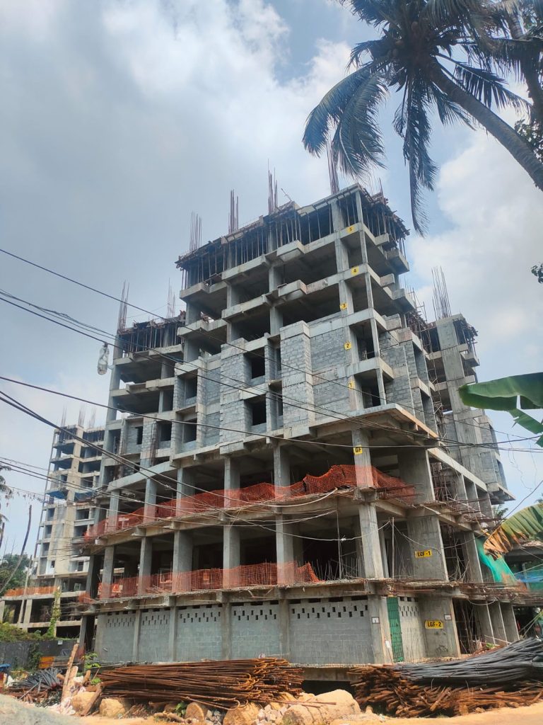 Column and Shear wall RCC- Basement- 100%, LG2 100%, LG1-100% ,GF 100% completed, FF- 100%, Second floor 100% completed, Third Floor 100% completed, Fourth Floor 100% completed, 5th floor in progress. Slab RCC- Basement- 100%, LG2 100%, LG1-100% ,GF 100% completed, FF- 100%, Second floor 100% completed, Third Floor 100% completed, Fourth Floor 100% completed, Fifth Floor 100% completed, Sixth Floor in progress. Staircase RCC -Basement – 1 Nos, LGF2- 1Nos, LGF1- 1 Nos, GF 2 Nos, FF 2 Nos, Second Floor 2 Nos, Third Floor 2 Nos completed, Fourth Floor 2 Nos completed. Ceiling plastering LG1 in progress, First Floor 60% completed, Second Floor in Progress. Block Work – First Floor in Progress, Second Floor in progress.