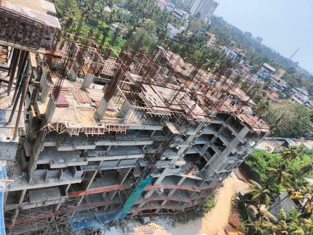 - CIVIL WORKS – Column and Shear wall RCC- 9th Floor balance 100 % planned , 10th Floor Column 50% Planned Slab RCC- 10th Floor 100% Planned , 11th floor 50% planned.Staircase RCC -9th floor 2 Nos, planned , 10th floor 1no planned .Ceiling plastering: Sixth Floor 100%, Seventh Floor 100% planned .