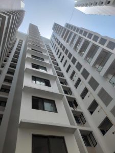 - Final Finishes- Door shutters and iron mongery – Main door shutter & aluminium windows for lvl 3,4 ,5,6,7,8,9 & 10 fixed Final painting – First coat painting – level 3,4,5,7,8 .9,10,11 100% completed,Plumbing & sanitary ware – vertical duct lines from level 1 to 17 -70% completed ,CP Fixtures 4 flats completed ,Electrical final fixtures – switches and sockets12 flats completed Firefighting final fixtures -12 flats completed