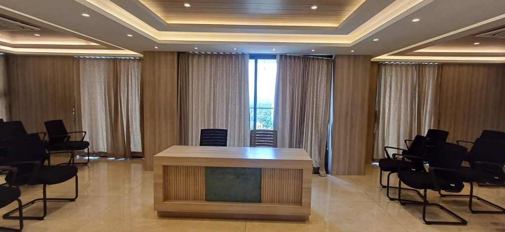 • Door Shutters: All internal door frames shall be of seasoned hard wood with flush door shutters. All internal and external faces shall be melamine finish or Paint finish as per the Architects design.